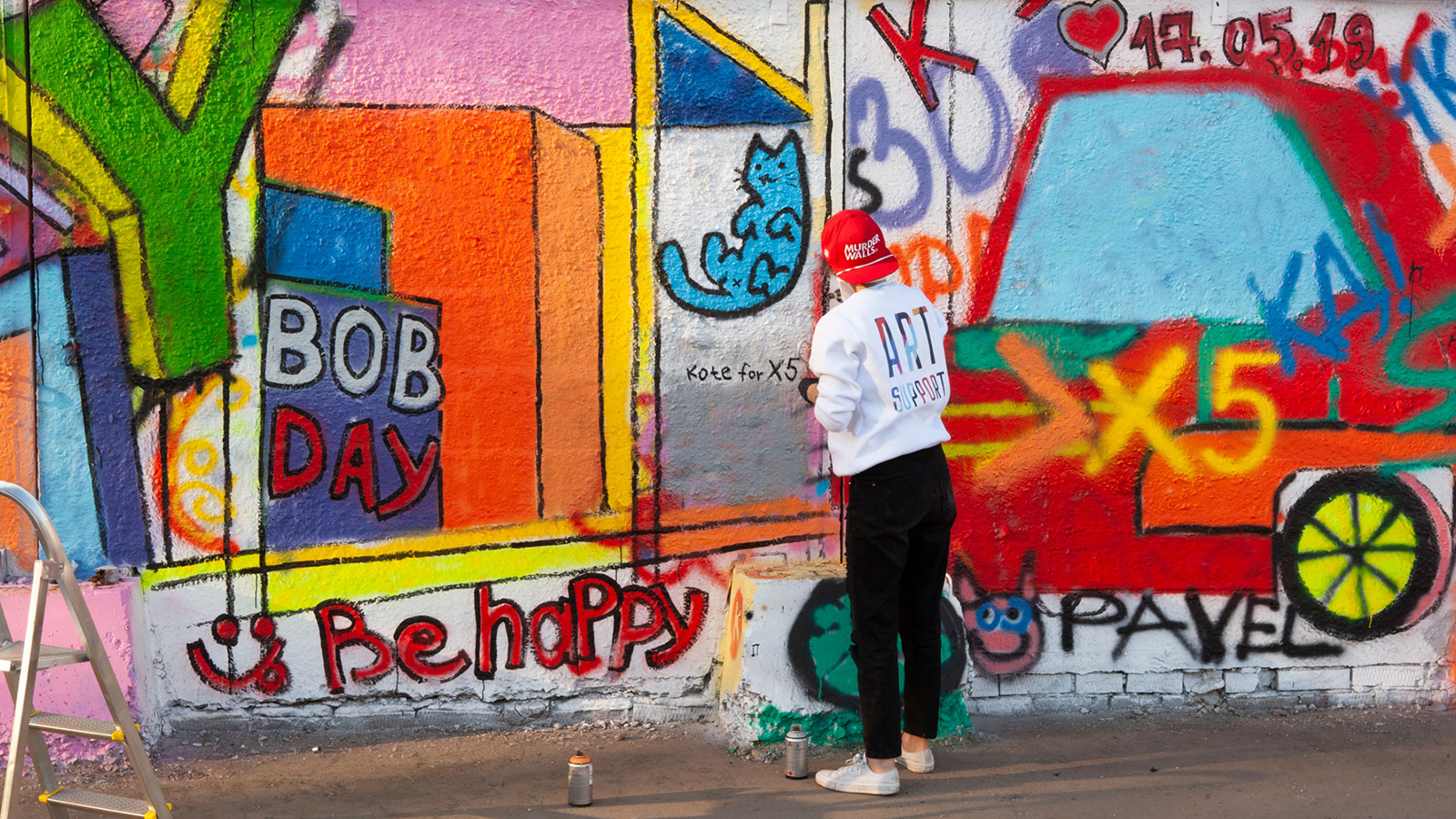 Мастер-класс был рассчитан на две тысячи сотрудников. В день мероприятия мы выступали в роли кураторов и поддержки: призывали сотрудников к действию, направляли и координировали.Участникам были предоставлены аэрозольные краски и полная свобода самовыражения. Всё пространство стены было укрыто за пару часов.