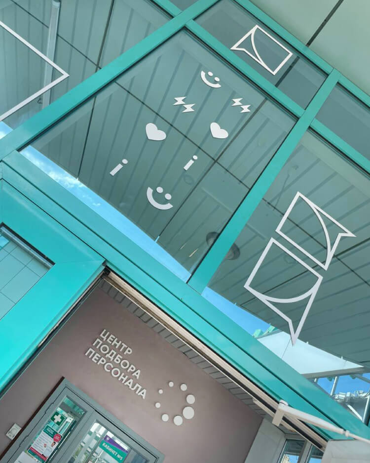 Мы оформили фасад центра подбора, чтобы визуально отделить его от основной входной группы и упростить поиск входа для соискателей на территории. Установили вывеску кронштейн, изготовили защищённый информационный стенд с карманами, оклеили окна.