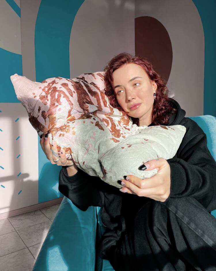 Отдельными малыми формами, заслуживающими внимания, стали увековеченные в бетоне подушки. Изготовление этих инсталляций — отдельный вид удовольствия, зачастую весьма грязный, но несомненно эстетически привлекательный. Их мы расположили на стальных подставках и разнесли по разным площадкам.