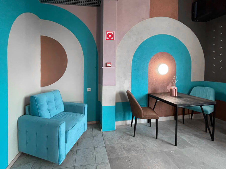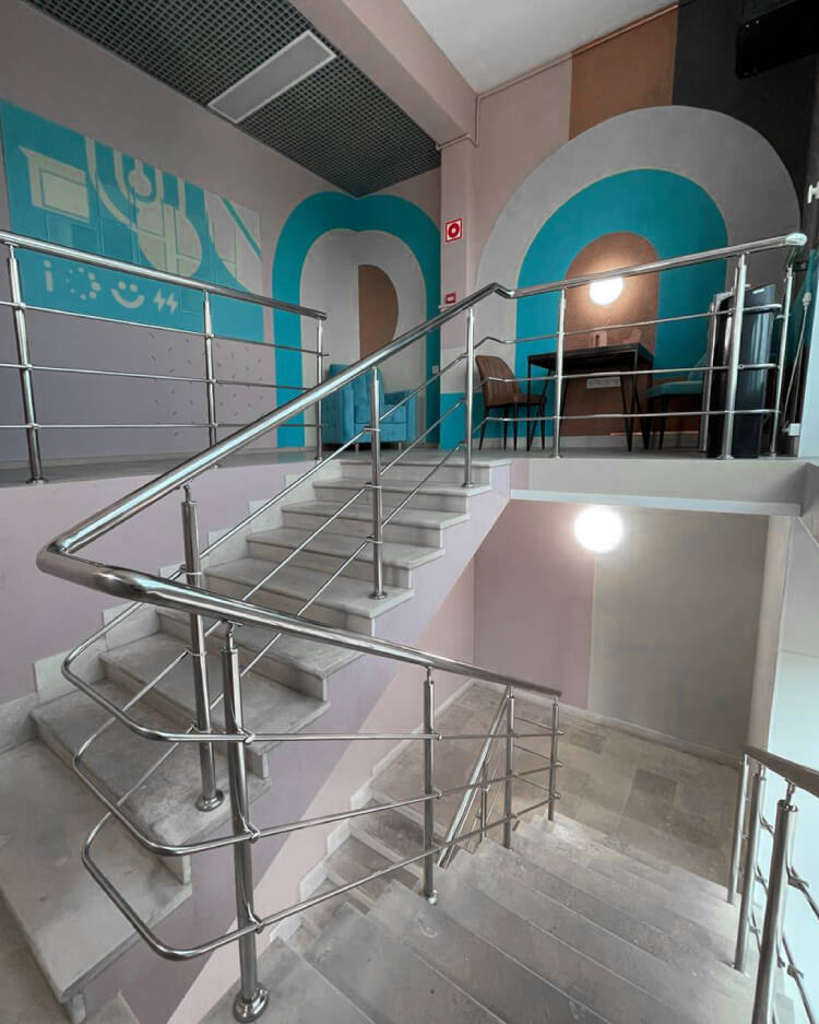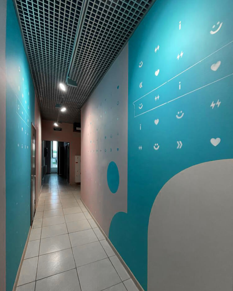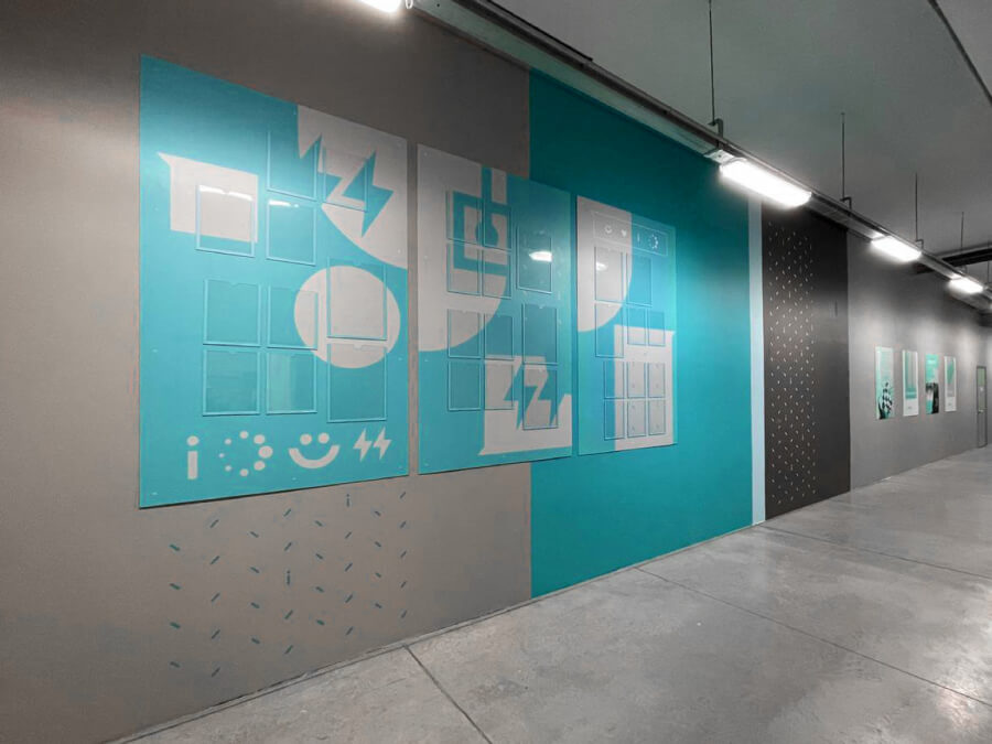 Весь проект, включая разработку и подготовку в студии, занял девять месяцев, два из которых мы буквально прожили на площадке. Большим подспорьем на этапе старта стал пилот преображения коридора на производстве, который мы провели за год до этого. Мы создали экспозицию с историей компанией, дополнив зону росписью и меблировкой. У нас уже была живая обратная связь от сотрудников, что мы движемся в верном направлении.