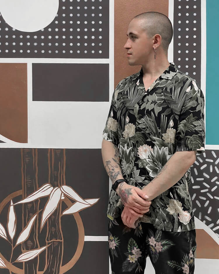 Фокс создал две тематические стены, наполненные символизмом. В одной из них он отразил материалы: кокос, хлопок, лён, бамбук, из которых производят фирменные изделия для сна.
