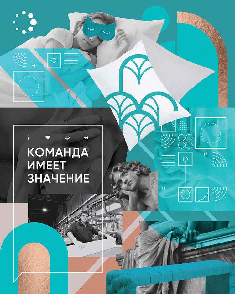 При создании визуальной концепции Марина использовала монументальные образы и производственные формы для увековечения труда и возведения его в ранг искусства, усилив это за счёт добавления символов и ассоциаций, связанных с мечтами и сновидениями. Так в проекте появились арочная геометрия, тканевые фактуры, пастельные и контрастные цвета.