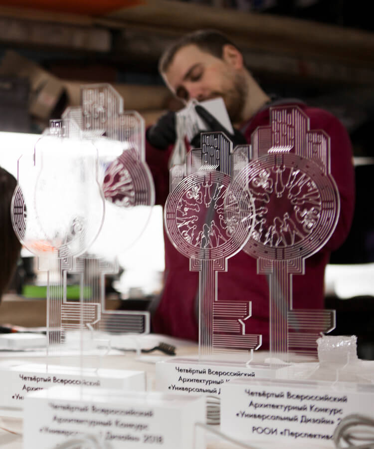 РООИ «Перспектива» ежегодно проводит конкурс среди архитекторов по направлению доступная среда. Сотрудники этой организации обучают студентов дизайну помещений и инфраструктуры с учётом требований и специфики области, таким образом делая общественное пространство доступным для всех жителей. Архитектурный конкурс «Универсальный дизайн» в 2018 году прошёл в «Центральном Доме Художника». На наши плечи легли разработка и изготовление серии наград.
