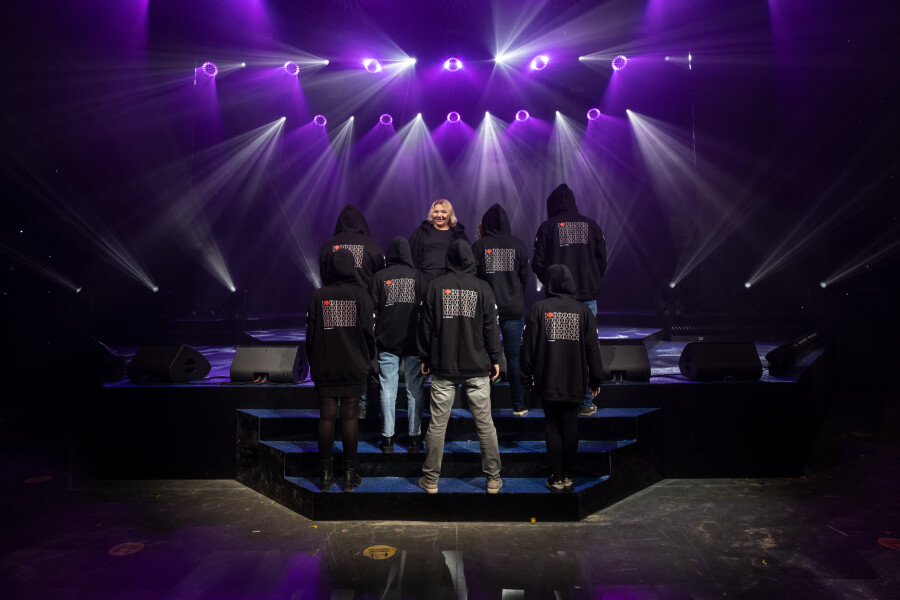 В ходе подготовки любого мероприятия важно, чтобы ничего не бросалось в глаза и не отвлекало от главного действа на сцене, особенно при работе в пультовой, когда случайный блик или яркое пятно могут высветить режиссёра или техника. Именно поэтому мы использовали нашу любимую чёрную базу.