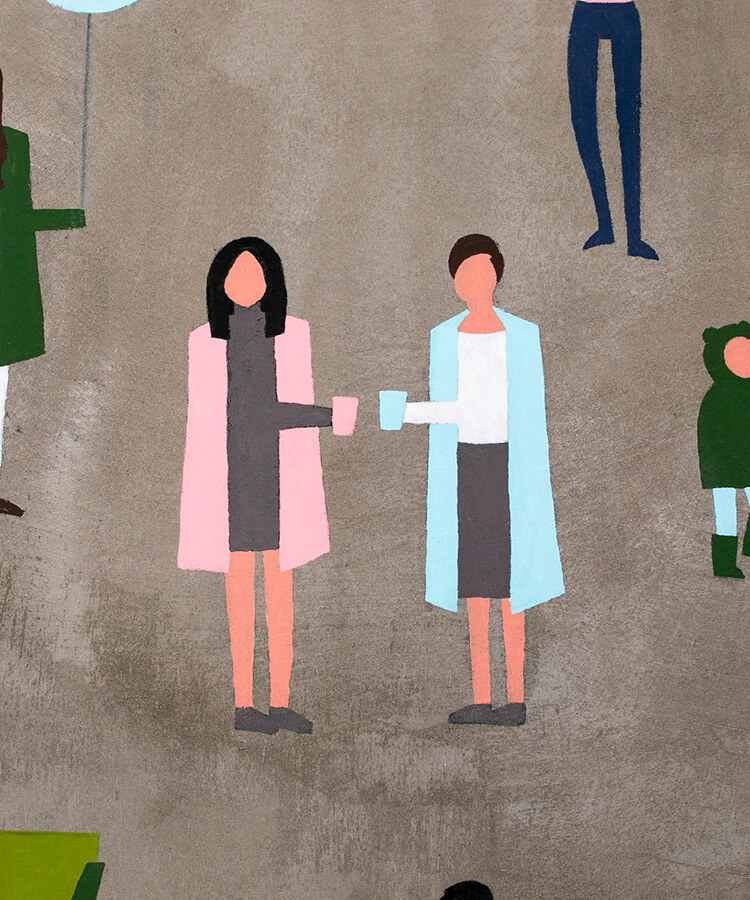 Марина отрисовала эскиз и воплотила его в реальность. Стилистика флэт-иллюстрации была выбрана неспроста. «Только люди» — это семьи, друзья, партнёры. И это послание легло в основу сюжета.
