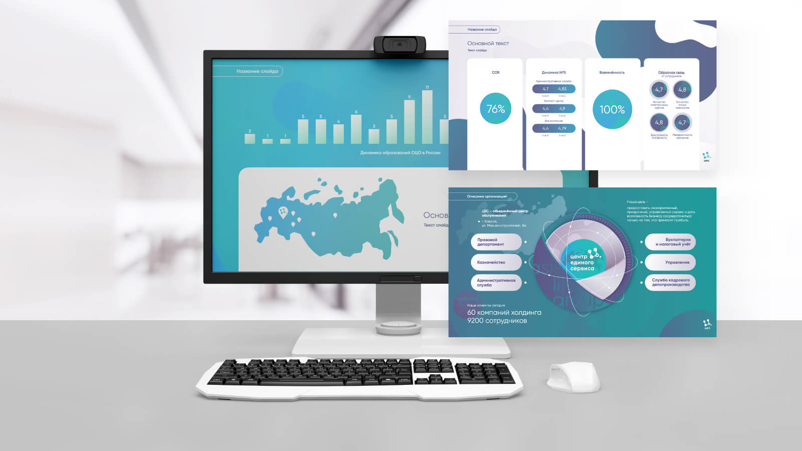 На поздних этапах мы создали темплейты (прим.: от англ. template — шаблон) для вёрстки продуктовых и информационных презентаций. Коллеги активно используют их в своей работе и рассказывают о себе. Первоначально «ЦЕС» создавался как поддерживающий бизнес. Спустя три года за счёт использования инновационных технологий и сплочённой команды компания не только закрывает потребности клиентов внутри группы, но и постепенно переходит к привлечению новых. Мы гордимся своим вкладом в формировании нового бренда и желаем коллегам процветания и роста в грядущем!