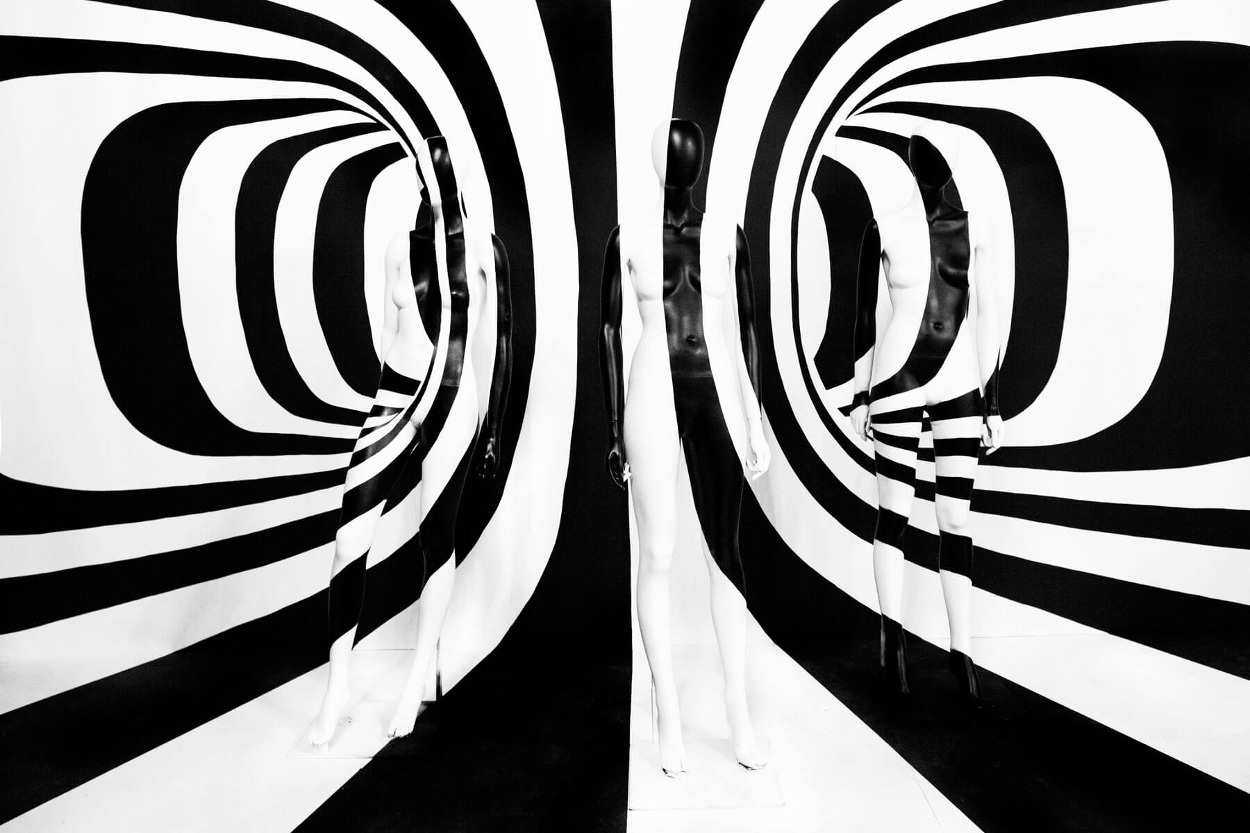 Манекены на переднем плане — главные лица в этой сцене. Они задают объём в пространстве, обманывают чувства. Композиция выполнена по принципу анаморфной иллюзии. Если говорить просто: стоя на заданной точке, ты видишь, как объекты сливаются с фоновой композицией. Делаешь шаг в сторону — объекты проявляются, картина распадается на планы. Готов поспорить, что, встав за манекен, ты сможешь скрыться из вида или спрятаться от преследующих тебя обстоятельств.