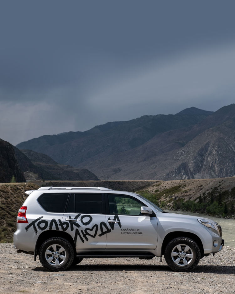 Нашей задачей стала упаковка этого путешествия: оформление внедорожника, одежда для команды, функциональные аксессуары, памятный мерч для попутчиков.
