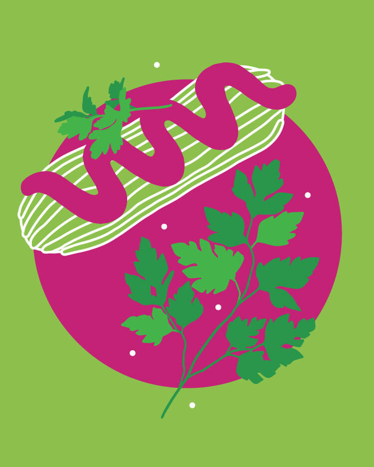 Мы создали серию минималистичных иллюстраций, на которых были изображены узнаваемые черты фирменных блюд и особенности их подачи ко столу.