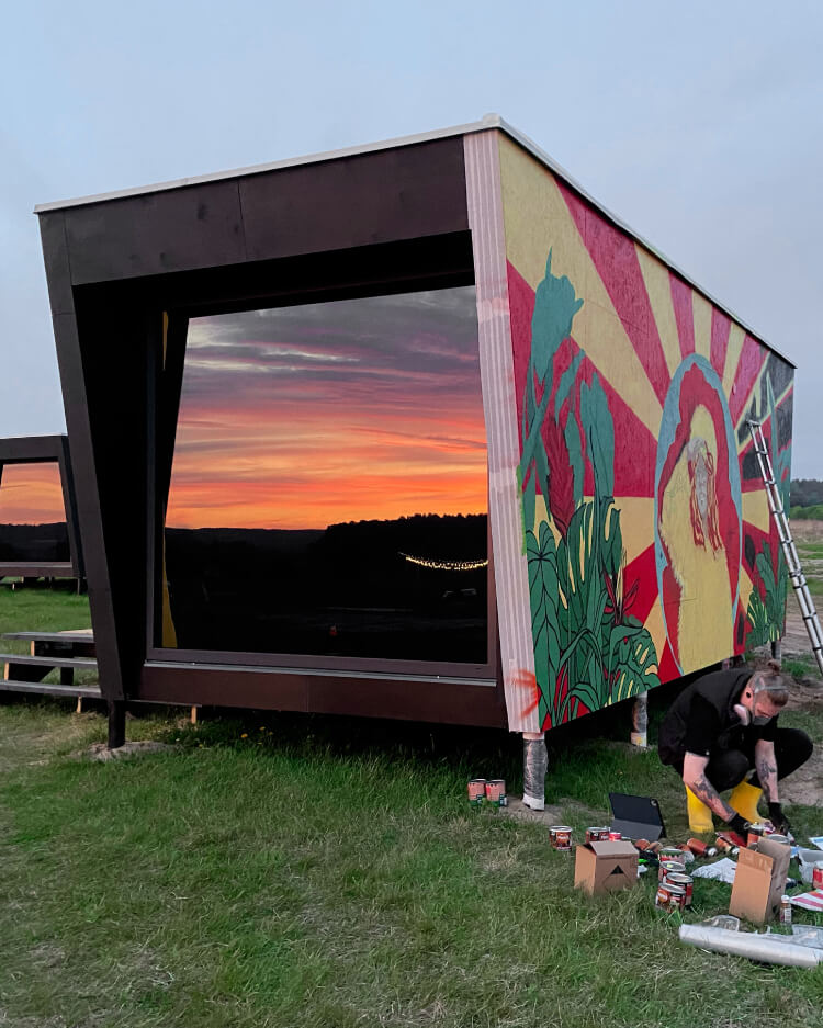Этой весной нам предложили принять участие в росписи новых построенных домиков для гостей фестивального глэмпинга, и мы с радостью согласились.