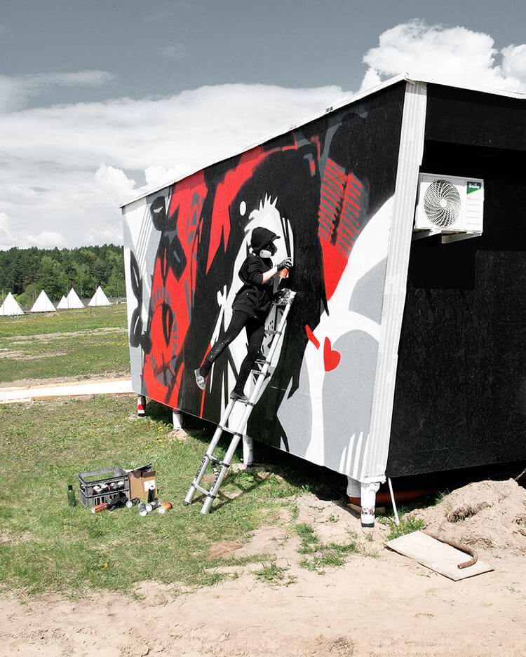 С командой фестиваля мы сотрудничаем с 2017 года, и за время нашего знакомства мы реализовали серию различных проектов. В нашей копилке есть серия мерча и открыток, творческие мастер-классы для гостей и арт-объекты разных масштабов: расписанные автомобили, широкоформатные полотна с граффити, малые архитектурные формы и инсталляции.