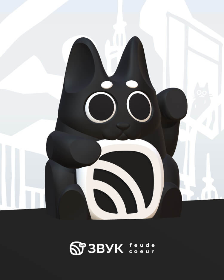 Когда мы работали над социальной коллаборацией с командой «Звука», Марина создала иллюстрацию с городским пейзажем и несколькими мурчащими жителями домов.